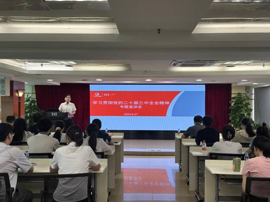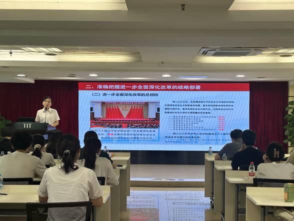 8月27日,紡織公司團(tuán)委書(shū)記梁晨在廣德大廈15樓會(huì)議室為各團(tuán)組織書(shū)記、委員,本部及紡出公司團(tuán)員青年,2024年新入職管培生共47人作學(xué)習(xí)貫徹黨的二十屆三中全會(huì)精神專題宣講。在宣講過(guò)程中,梁晨通過(guò)鮮活的語(yǔ)言、生動(dòng)的案例,從深刻把握進(jìn)一步全面深化改革的重要性和必要性,深刻認(rèn)識(shí)進(jìn)一步全面深化改革的指導(dǎo)思想和總目標(biāo)、重大原則、重要部署,認(rèn)真落實(shí)進(jìn)一步全面深化改革的實(shí)踐要求等方面深入淺出地對(duì)全會(huì)精神進(jìn)行了系統(tǒng)闡述和解讀。