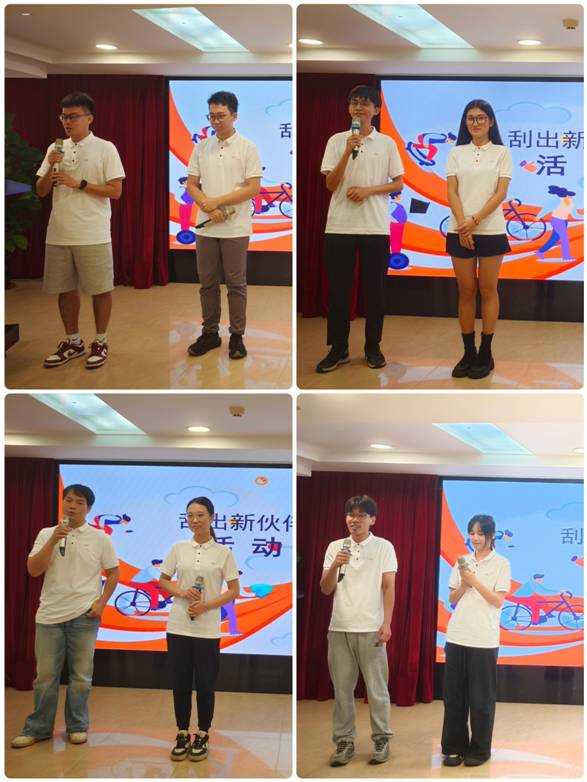 活動以趣味性的刮卡形式,隨機將新員工兩兩配對結成“上班搭子”。結對成功的伙伴們攜手登臺,或進行風趣幽默的自我介紹,或分享工作小趣聞,瞬間拉近了彼此的距離,現場掌聲與笑聲不斷。
