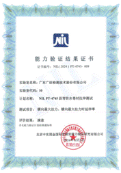 NIL PT-4745瀝青防水卷材拉伸測(cè)試能力驗(yàn)證結(jié)果滿意證書
