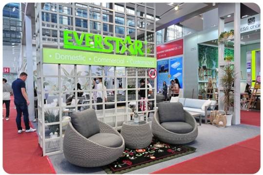 The furniture booth was designedwith a low-carbon and environmentally friendlyconcept and paired with a green plant-stylebackgroundtoshow outdoor furniture products, instantly filling the atmosphere with outdoor aesthetics.