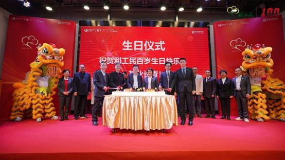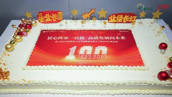 生日儀式點燃了整個現(xiàn)場。特邀領(lǐng)導(dǎo)嘉賓共同上臺,大家一起共祝利工民100周年生日快樂!