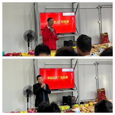 2024年1月3日上午,廣紡檢測(cè)肇慶項(xiàng)目基地迎來(lái)了一場(chǎng)別開(kāi)生面的員工歡迎會(huì)。紡織公司副總經(jīng)理關(guān)勇帶領(lǐng)廣紡檢測(cè)公司領(lǐng)導(dǎo)現(xiàn)場(chǎng)參加。
