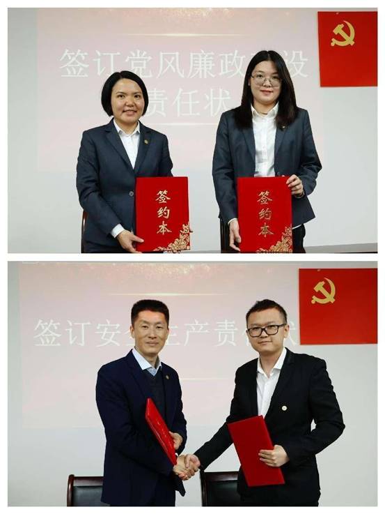 公司領(lǐng)導與部門代表分別簽訂2024年度黨風廉政建設(shè)責任書、安全生產(chǎn)責任書。