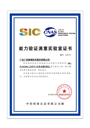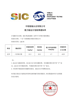 近日,廣紡檢測(cè)收到中輕檢驗(yàn)認(rèn)證有限公司發(fā)來(lái)的SIC-PG2024001皮革中六價(jià)鉻含量的測(cè)定能力驗(yàn)證計(jì)劃滿意結(jié)果通知單和實(shí)驗(yàn)室證書(shū)。